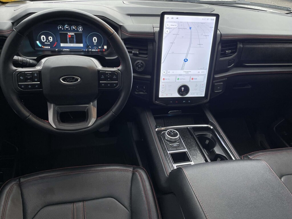 FORD GOLD CERTIFIED, 12 Speakers, 15.5" LCD Capacitive Touchscreen, 1st & 2nd Row Floor Mats w/Logo, 26mm Engine Radiator, 3.73 Axle Ratio, 360-Degree Camera w/Trailer Reverse Guidance, 3rd row seats: split-bench, 4-Wheel Disc Brakes, ABS brakes, Active Noise Control, Adjustable pedals, Advanced Cargo Manager, Air Conditioning, Auto High-beam Headlights, Auto-dimming Rear-View mirror, Automatic temperature control, Black Headlamp and Fog Lamp Bezels, Black Limited Tailgate Badge, Black Roof Rack Side Rails, Body Color Door Handles, Brake assist, Bumpers: body-color, Connected Built-In Navigation, Delay-off headlights, Dual Exhaust System, Ebony Black Bar and Mesh Grille, Ebony Black Power Deployable Running Boards, Ebony Black Tailgate Applique, Electronic Stability Control, Equipment Group 304A Stealth Performance Package, Expedition Lettering on Hood, Exterior Parking Camera Rear, Front Bucket Seats, Front Center Armrest, Front dual zone A/C, Front fog lights, Fully automatic headlights, Garage door transmitter, Heated & Ventilated Leather Front Captain's Chairs, Heated front seats, Heated rear seats, Heated steering wheel, Heated/Ventilated Lthr Front Captain's Chairs (A), Heavy-Duty Trailer Tow Package, Integrated Trailer Brake Controller, Leather steering wheel, LED Taillamp w/Black Bezels, Memory seat, Navigation System, Outside temperature display, Passenger vanity mirror, Pedal memory, Power driver seat, Power Liftgate, Power moonroof, Power passenger seat, Power-Folding Sideview Mirrors w/Autofold, Pro Trailer Backup Assist, Radio: B&O Unleashed Sound System by Bang & Olufsen, Rain sensing wipers, Rear air conditioning, Rear reading lights, Rear window defroster, Rear window wiper, Reclining 3rd row seat, Red Brake Calipers, SiriusXM w/360L, Speed control, Speed-Sensitive Wipers, Split folding rear seat, Sport Center Console, Sport-Tuned Suspension, Stealth Performance Edition Package, Steering wheel memory, Steering wheel mounted audio controls, SYNC 4 w/Enhanced Voice Recognition, Variably intermittent wipers, Ventilated front seats, Wheels: 22" Premium Black-Painted Aluminum.